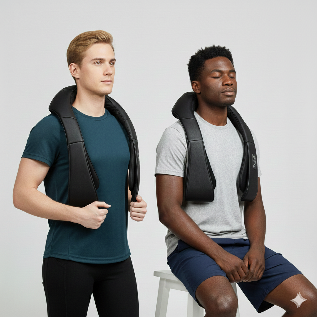 L’appareil utilise des têtes de massage rotatives qui imitent les mouvements d’un massage shiatsu. La chaleur infrarouge intégrée aide à détendre les tensions musculaires en profondeur. Il suffit de le poser sur la zone souhaitée (nuque, dos, lombaires, jambes…) et d’ajuster l’intensité.